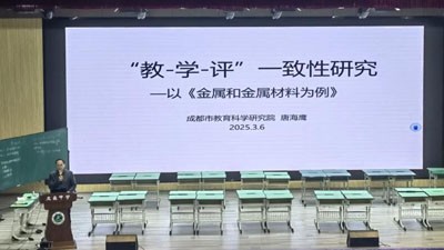 成都市教育科学研究院化学教研员唐海鹰老师进行了以“教-学-评一致性研究”为主题的讲座,为化学教师提供了宝贵的教学思路,助力他们在教学中更好地落实“教-学-评”一致性,推动化学教育质量的全面提升。