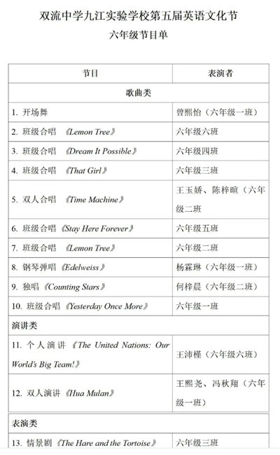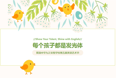 “Show Your Talent,Shine with English”,英语艺术节虽然结束了,但英语学习的脚步永不停歇。希望同学们以此次活动为契机,在未来的日子里,继续大胆展示自己的才华,让英语成为照亮梦想的光芒!期待下一届英语艺术节,我们再次相聚,续写更多精彩!(双流中学九江实验学校)