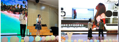 《Counting Stars》《Teeth》《Wake》《Jar of Love》……一首首歌曲在七年级同学们的演唱下格外动听。舞蹈、话剧、短剧、配音,丰富的节目类型亮点频出,《夜莺与玫瑰》《小猪佩奇之泥坑历险》《Remember Me》《在银河中孤独摇摆》……特别值得一提的是7.1班古装英语剧《甄嬛传之滴血验亲》将中外文化碰撞结合,惊艳全场,为艺术节注入多元艺术魅力。