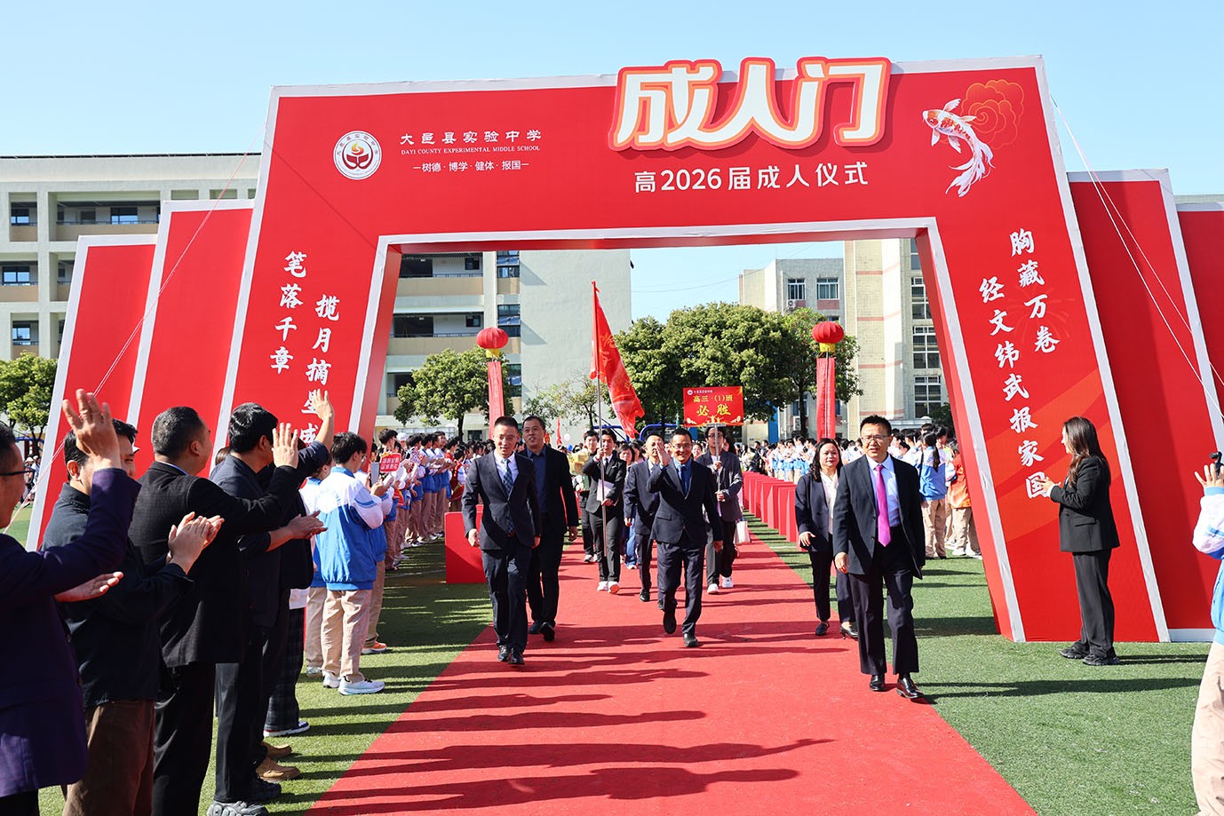 暮春涵晖,芳华绽彩;十八而志,礼序华章。2026年4月17日上午,大邑县实验中学高2026届成人礼隆重举行。学校全体行政领导、高三全体师生及家长、高一高二部分师生齐聚校园,以承儒明礼、思政立责、奉法立身、逐梦前行为内核,共赴这场融中华礼仪、家国情怀、亲子温情于一体的青春盛典,见证少年加冕成人,以志为帆,笃行致远。