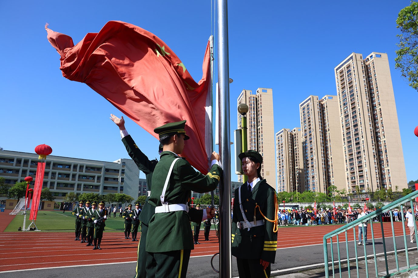 国歌嘹亮,红旗猎猎。全体肃立注目,五星红旗冉冉升起,家国情怀激荡心间。学子于成年之际立家国之志,明时代之责,以思政立责筑牢青春根基,将小我融入大我,涵养赤子丹心。