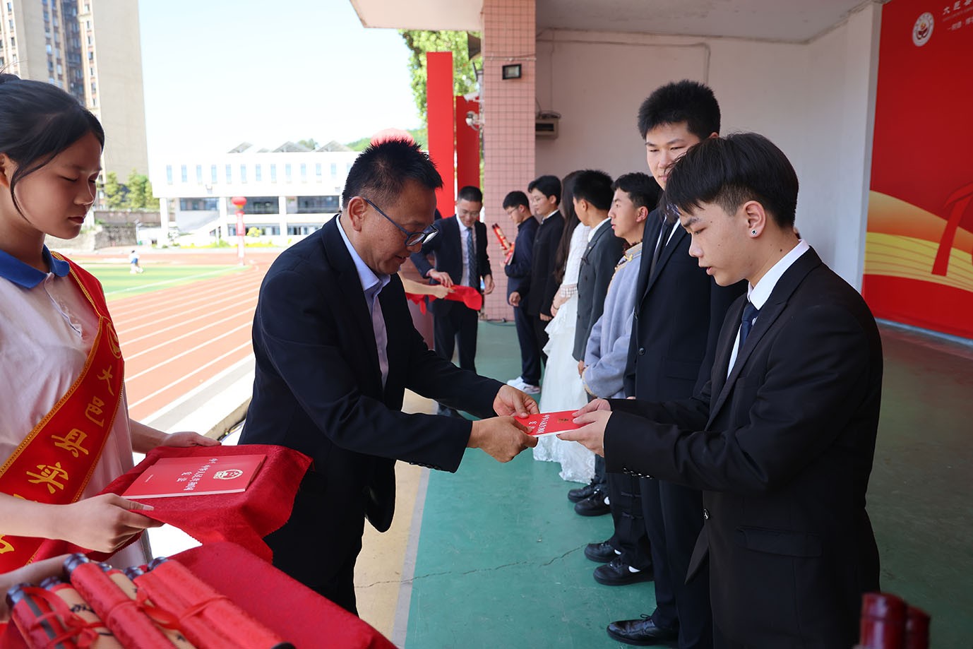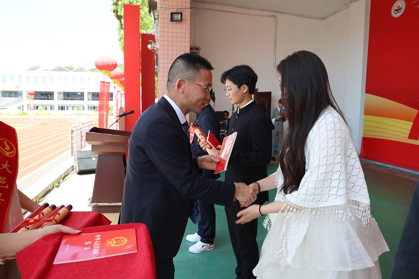 学校党总支书记李华清、校长宋仕平及各班班主任为学子颁发宪法手册,引导青年崇法明德、恪守公民准则,以奉法立身筑牢成长底线,树立法治信仰。全体学子手持宪法,面向国旗庄严宣誓,誓言铿锵有力、掷地有声,彰显成年担当,“许下十八而志、笃行致远的庄严承诺。”