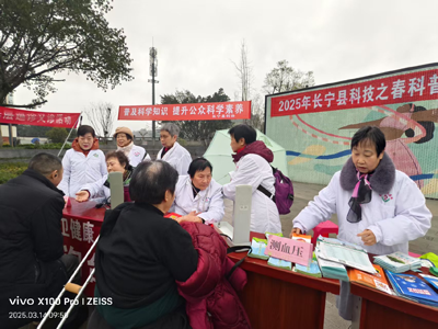 2025年3月14日上午,长宁县青年广场微雨柔柔。长宁县老科协医卫专委会联合长宁县人民医院,在这里开展健康咨询与义诊服务活动。
