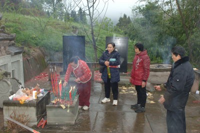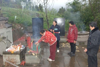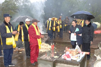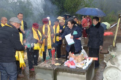 在会议开始前,由理事会会长姚永华先生亲自带队,一行人前往入川始祖姚胜龙老祖的墓碑前进行祭祖仪式。道士姚天全先生作为祖祭人,引领着族人按照辈分高低,依次向老祖宗敬香、烧钱纸,表达对先祖的无限敬仰与怀念。这一环节,不仅加深了族人对家族历史的认知,更激发了大家传承家族文化的责任感与使命感。