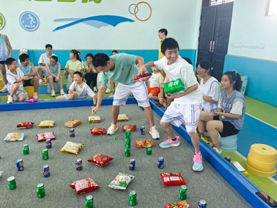 在“滚滚乐”游戏中,大家兴致勃勃地滚动可乐易拉罐,根据易拉罐停下的位置领取对应的奖品或接受小惩罚,奖品有香脆的薯片和爽口的饮料,惩罚则是带着趣味的“捏着鼻子转圈圈”等,现场不时响起阵阵欢笑。