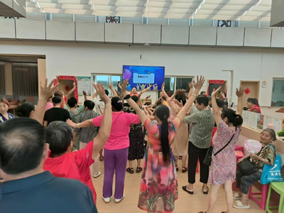 首先,社工志愿者与“天府银龄”志愿者引领大家参与舞动疗愈活动。随着轻快愉悦的音乐声响起,大家共同跳起了老年广场舞《快乐崇拜》。广场舞的动作简单而富有节奏感,不仅让老年人们找回了年轻时的活力,也让青少年们感受到了老年人的乐观与热情。在舞动的过程中,祖孙之间相视而笑,彼此间的距离悄然拉近。