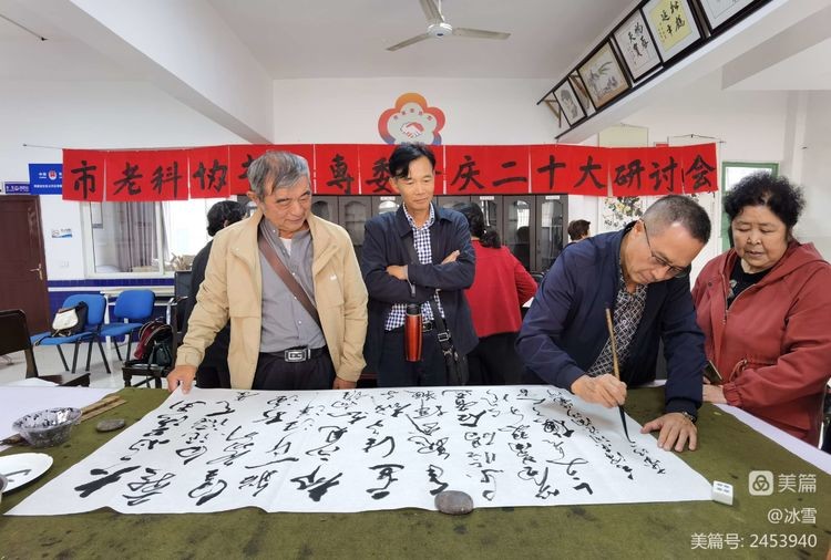 与会的会员们畅谈了学习习近平总书记二十大报告讲话精神及收获体会,讴歌在党的领导下的光辉历程,以及所取得的伟大成就来之不易。在和平年代,展望我们国家及中华民族伟大复兴的美好愿景,强调坚决拥护中国共产党的正确领导,坚决贯彻执行党的各项方针政策,紧紧团结在党的周围。作为书画专委工作特色,守好文化阵地和中央保持高度一致,做好文化宣传工作。