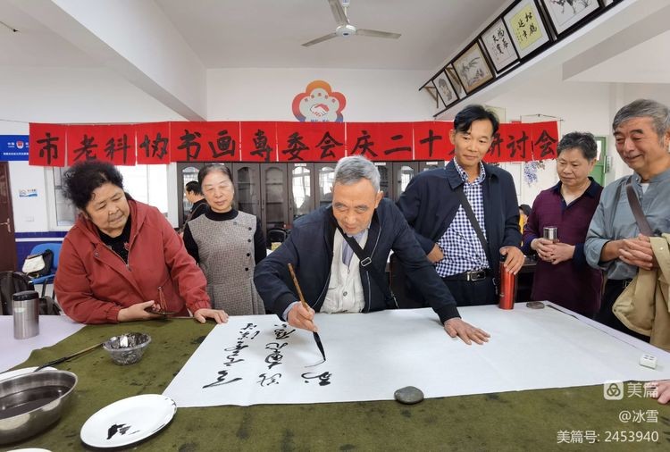 会上,会员们现场创作庆祝党的二十大召开的书画作品。(乐山市老科协)