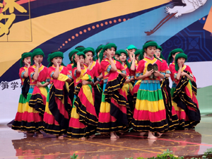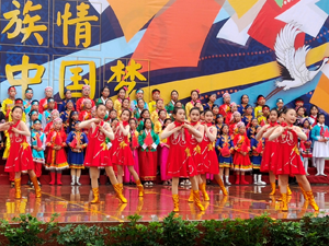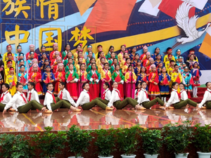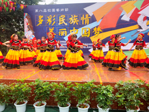 幸福小学第八届校园艺术节以“多彩民族性·美丽中国梦”为主题,700名师生登台演出歌舞节目。从五年级演出《各族儿女心连心,唱支山歌给党听》开始,到老师歌舞节目《美丽中国》结束后,对获得书法、绘画、手抄报奖的120多学生颁了奖。