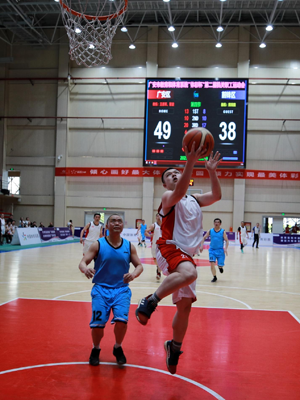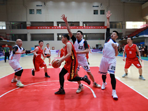 2023年4月8日,广安市教育系统职工运动会篮球赛,来自武胜县和华蓥市代表队比赛精彩瞬间。