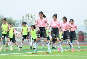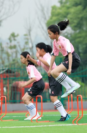 今年春节开学以来,四川省华蓥市的校园女子足球队活跃在各所中小学校的绿茵场上,迎接7月28日至8月8日在成都举行的世界大学生夏季运动会。