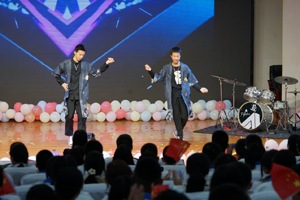 受现场热烈气氛的感染,音乐老师赵强也高歌一曲。