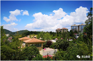 青山浪漫。绿柳红杉涧。岭上朝霞蝉声伴。迤逦风光无限。倚栏望断云烟,畅怀大美人间。消夏纳凉圣地,诗情画意天泉。