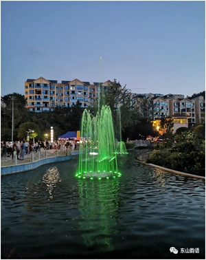 广场阔绰,霞映华灯烁。艳舞弦歌冲寥廓,业主风流洒脱。热情点染天泉,天泉春意盎然。沾上天泉灵气,逍遥不羡神仙。