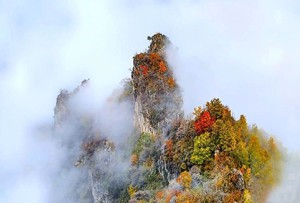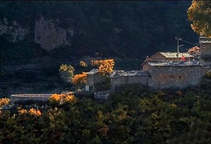 秋临山崖柿飞红