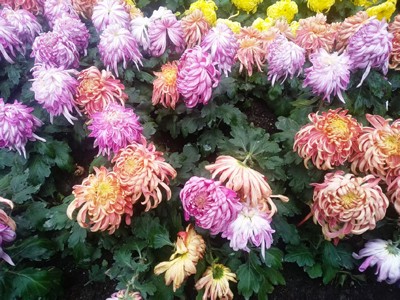 一走进人民公园,迎面可见百余种菊花各显美态,争奇斗艳。 人民公园北大门广场的"锦绣天府 菊颂今秋″超大盖碗茶雕搭配竹编桌椅,烟火成都的休闲气息展现!沿着两旁的菊花走廊前行至大草场展区,″穿越千年,古蜀双壁″,太阳神鸟与三星堆青铜面具在菊花中跃动,菊花丛喚醒了历史。走到中心花坛,看见"诗意成都,金秋菊韵"白居易咏菊诗意展现,姹紫嫣红,金菊如栗;转过一片树林,来到纪念碑广场的″铭记丰碑·礼献先烈",以盛开的菊花花蓝,寄托着对先烈们的深切敬意。