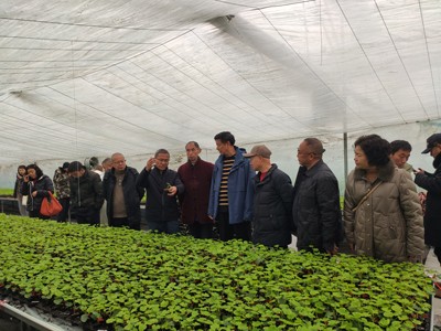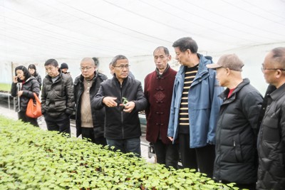 培训会开始前,进行实地参观,成都市老科协副秘书长李维嘉带领大家参观了金田种苗公司智能化蔬菜育苗设施大棚、智慧农业设施,苦瓜种苗嫁接现场,松花型甜杆西兰花菜、水果型莲花白、室内盆景观赏用的红心大白菜等现场实物。
