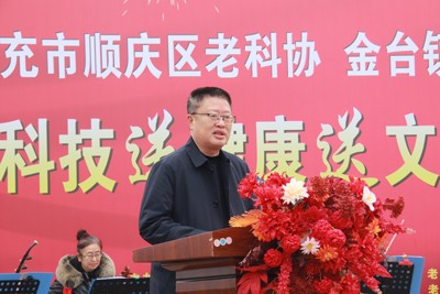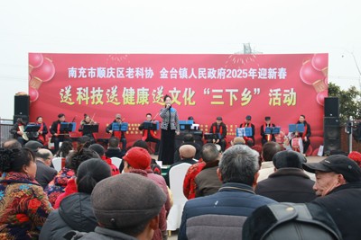 2025年1月18日,由南充市顺庆区老科协、金台镇人民政府主办,区老科协农村分会承办,区卫健、商务、工业、机关街道等分会,南充市众爱艺术团、蔚蓝艺术团,农村分会金台专业组等协办的送科技、送健康、送文化“三下乡”活动在金台镇万佛桥村幸福怡家农场热烈举行。中共顺庆区委常委、区总工会主席杜彬出席活动并讲话。金台镇党委副书记、镇长魏迪出席活动并致辞。顺庆区委老干部局副局长郑紹菊,区科协主席梁茵,金台镇党委副书记郑靓莅会指导。区老科协各联系服务营地业主、万佛桥村以及周边村的村民近1000人参加了活动。区老科协会长陈简政主持活动。