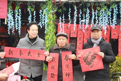 活动现场,迎新春的重头戏是写春联和送春联。杨建国老师笔走龙蛇,一个个苍劲有力的“福”字,一幅幅春联送到群众手中,大家接过春联,笑得合不拢嘴,看着充满喜庆吉祥的大红春联,预示来年生活一定红红火火,幸福美满。