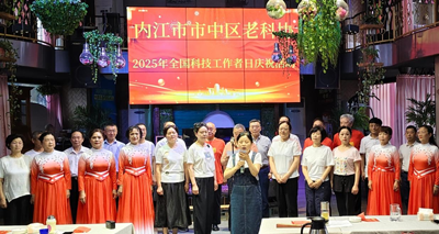 在第九个“全国科技工作者日”和中国人民抗日战争暨世界反法西斯战争胜利80周年纪念日来临之际,5月27日上午,内江市市中区老科技工作者协会在甜城大厦会务中心隆重举办主题庆祝活动。市中区老科协会长张翼、区科协领导黄继初、区老干局局长黄维娜、协会荣誉会长李勇、副会长、健康顾问和各专委会会员及近百余人齐聚一堂,以文艺汇演的形式致敬科技工作者,凝聚奋进力量。