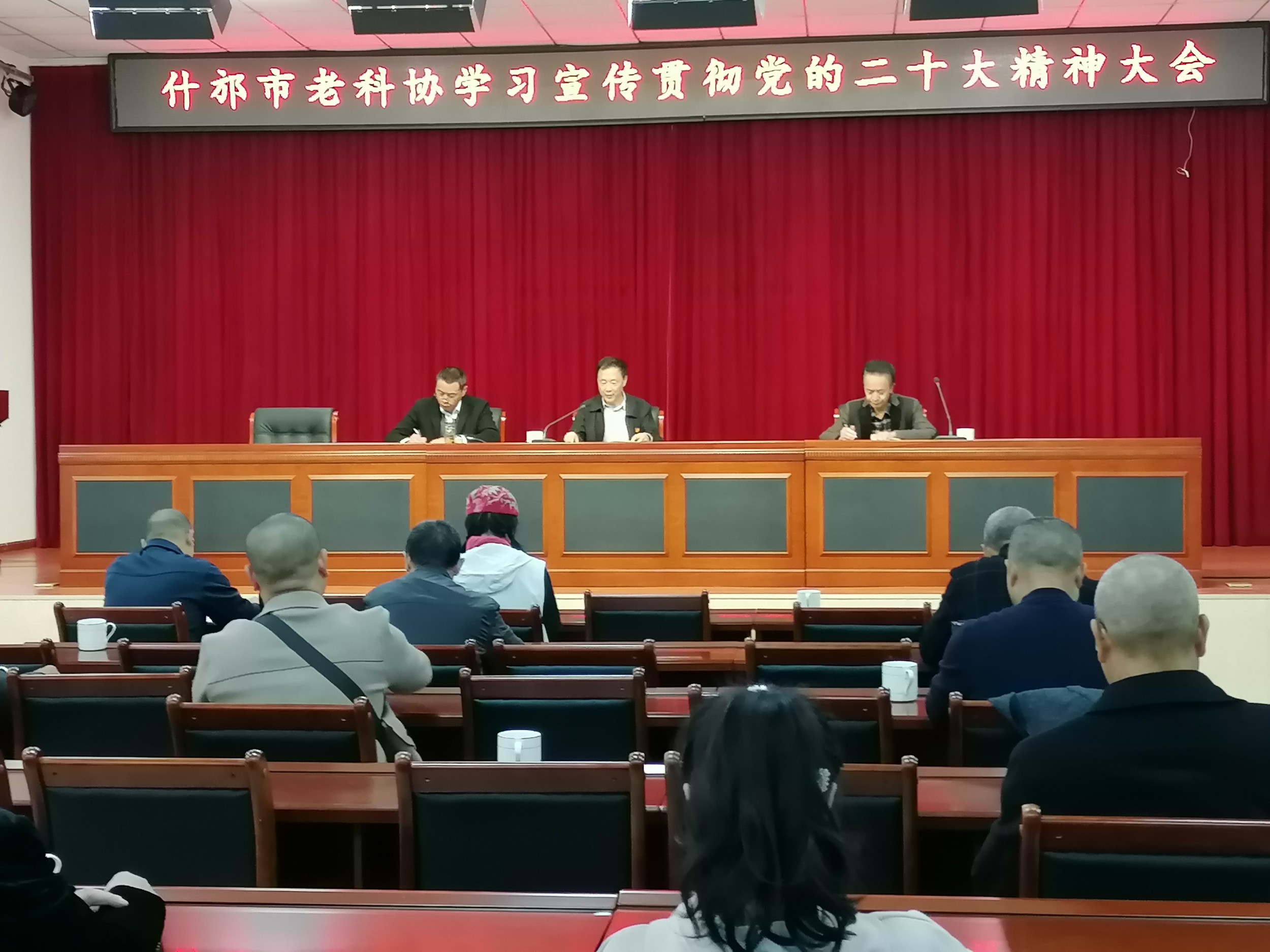 10月26日上午,什邡市老科协召开会员大会,传达学习贯彻党的二十大和二十届一中全会精神。会长杜甫荣传达学习党的二十大和二十届一中全会精神并讲话。