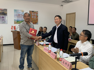在会上,市老科协副会长兼秘书长王宗全向荣获成都市老科协2023年科技助农联系点先进单位----四泓种植农业合作社颁发了“先进集体”荣誉奖状。