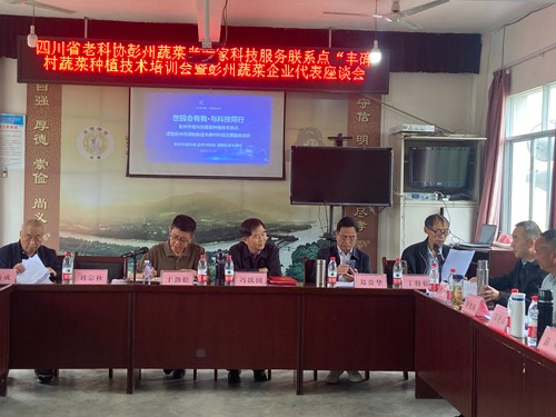 4月24日"四川省老 科协彭州蔬菜老专 家科技服务联系点 "丰碑村蔬菜种植技术 培训会暨彭州蔬菜 企业代表座谈会在彭州市濛阳街道丰碑村举行。