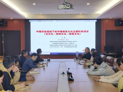 王成教授介绍了中兽医的概念和源流,阐述了中国兽医文化发展的马文化、宠物文化、兽医文化三个阶段的特点或标志;在当前中国兽医文化建设进程中,江苏农牧科技职业学院《兽医文化》、塔里木大学《兽医之道》等课程值得大家学习,建议大家积极参加中国兽医协会兽医文化分会、中兽医分会等组织的相关活动,获取更多的中兽医与中国兽医文化知识、信息。黔南民族职业技术学院,作为贵州开设中兽医课程的主要高职学校,建议抓住“特色”,借鉴人医研究成果,移植布依族、苗族民间医药医技,丰富中兽医与中国兽医文化内容;进一步加强教学互动,努力提高动物医学专业、畜牧兽医专业学生学习兴趣,为黔南布依族苗族自治州乃至贵州全省农牧特色产业服务。
