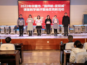 为全面落实立德树人根本任务,推进“课堂革命”,推动 “双减”工作走深走实,促进教师专业成长和学生全面发展,根据《华蓥市教育和体育局关于开展“强师能?促双减”系列活动的方案》精神, 12月2日,华蓥市2022年“强师能?促双减”小学英语抽签竞教活动在华蓥市双河小学举行。