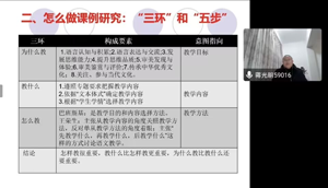 蒋光明老师则从核心素养培养的中职语文典型课例研究入手,带领与会教师从仰望理论的星空,走向行动探索的实地。他围绕“课例研究”,以其宽广的视野,横扫中外著述,深入浅出地综述了什么是课例研究;从教学构思、教学方案、课堂实录、教学评析、教学反思的目的、要点、表述等方面阐述了怎样进行课例研究。还以“中国革命传统作品选读”为例,展示了其以学习革命精神为核心,以读法为基础,以语用为目标的教学定位;通过将以文体定篇章的生活化专题教学项目,细化为一个一个的教学任务,以创设情境与任务驱动的方式,实现教学目标的课例研究框架。再以课例研究的论文、教学方案、教学反思等成品,告诉老师们,“课例研究”,其实就是一堂课“为什么教”“教什么”“怎么教”的过程性描述。蒋老师明白晓畅的智慧结晶,为工作室成员们成为研究型教师送上了成长之梯,也传达出教师成长的天花板必然是研究型的专家共识。