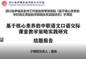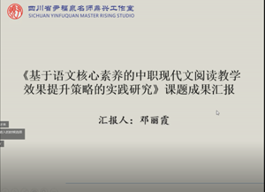 庄严而隆重的授牌仪式后,大会进行了承前启后的课题成果展示与汇报。工作室导师、省特级教师、德阳市杰出教师尹福泉,有突出贡献的省优秀专家蒋光明分别以讲座的形式,倾注了他们对工作室成立与发展的扶植和引领。部分成员围绕“基于核心素养的中职语文课堂教学策略体系实践研究”,展示了各工作站子课题的结题成果。