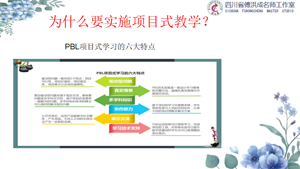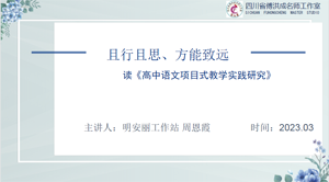 明安丽老师工作站的周恩霞老师以“且行且思 方能致远”为主题分享了高中语文中实施项目式教学的意思和如何实施项目式教学。