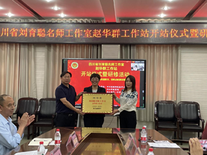 内江市第一中学高度重视内江赵华群工作站开站仪式工作,学校党委书记、校长、正高级、特级教师、四川省鼎兴名师工作室领衔人李孝成向所有与会领导和来宾表示了热烈的欢迎,并介绍了学校的办学特色和教育教学改革成果。李校长指出:学校发展离不开一大批优秀的教师,名师就是资源、就是资本、就是生产力。他强调,在省级名师工作室下,成立内江一中工作站是学校的重大喜事,学校予以高度重视,这也是学校高度重视教育教学教研科研工作的一个重要体现。学校将全力以赴支持工作站的建设和发展工作。然后,李校长宣读了四川省刘育聪名师工作室成员文件并和工作室领衔人刘育聪为工作室成员赵华群授牌。