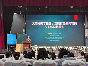 5月20日上午首先由吴向东教授为大家作关于《大单元教学设计:对教材单元内容的A-STEM化重构》的报告。首先吴教授通过课本上《水的特性》一课和《拱桥设计》一课告诉老师们不管是教材还是课标,都需要去反复琢磨、研究形成自己的理解、观点、甚至是“批判态度”。随后通过对船的相关研究告诉我们科学的本质是用模型、定律、机制和理论来解释自然现象。最后通过声音单元结构的改变,尝试从制作乐器开始,希望老师们科学实验课是基于一个真实任务,学生由于缺乏相关知识,所以师生一同研究学习,从而获取知识、应用知识、解决问题。