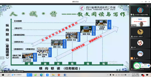初夏时节,为进一步引领、带动四川省傅洪成名师工作室成员、青年成员落实落细榜单任务“中职语文项目式教学”,5月26日晚,四川省傅洪成名师工作室教师克服困难,腾出时间,再次相聚云端,开展了《高中语文项目教学实践研究》第二次线上读书分享交流活动。