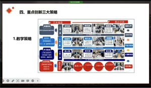 戴志敏老师结合近年来教师技能大赛获奖案例,从“研究大赛方案,精准对标备赛”“立足课程标准,开展专题教学”“抓住时事热点,结合专业重构课程”等三个方面指导参会教师精准备赛,提出“重点创新三大策略”开拓教师教学设计思路,并勉励教师潜心备战省赛决赛,凝心聚力做好比赛。