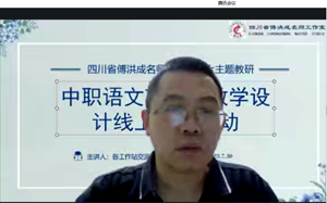 工作室领衔人傅洪成老师作总结讲话,肯定了这次线上研修活动,并以《携手同行参加示范培训,落实落细统编教材教学》为题传达了近日四川省傅洪成名师工作室参加教育部、人社部举办的中职语文统编教材国家级培训的会议精神,指出:一是中职语文教学要有新颖性;二是中职语文教学要有生动性;三是中职语文教学要有探究性;四是中职语文教学要有实践性;五是中职语文教学要有职业性。