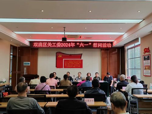 双流区关工委首先代表成都市关工委慰问了徐逸辰等8名儿童,为他们送上了米和油;然后代表双流区关工委慰问了刘沐辰等8名儿童,为每名儿童送上了500元的慰问金。