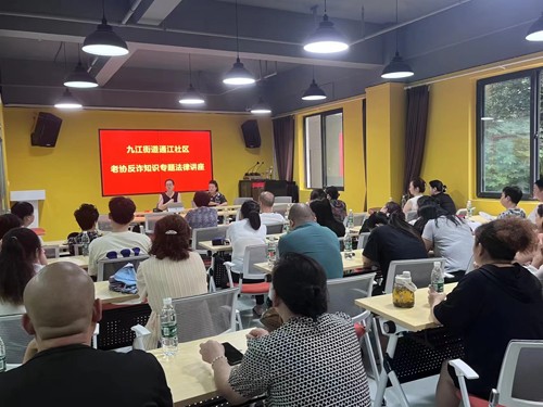 讲座特邀通江社区法律顾问、四川瞿上城律师事务所黄冠英律师为大家讲解反诈骗相关的法律知识。黄律师针对老年人心里防范意识不强、辨别能力弱等特点,用通俗易懂的语言向大家讲解了养老诈骗的常用手法、作案特点、防范方法等知识,引导大家在日常生活中要提高警惕;同时黄律师结合实际案例及现场提问等方式,为老协会员们普及法律知识,增强法制观念和法律意识。