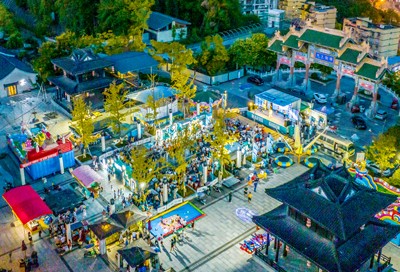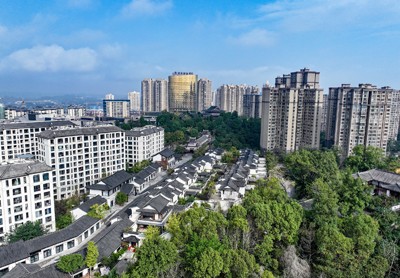 鸟瞰四川省华蓥市“天上街市”古色古香的文艺之家。