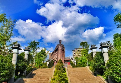 四川省华蓥市守望“天上街市”的安丙铜像。