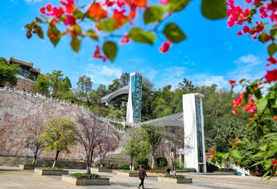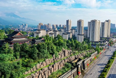 四川省华蓥市“天上街市”的安丙主题文化公园一角。