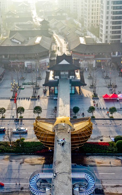 在安丙的守望下,走在“天上街市”,宋风古韵扑面而来。街市建造时,不仅从华蓥市本身的城市文化入手,而且在打造的时候就突出了南宋特色文化,将历史融入时尚,将商业融入生活,将文化融入街区,还原南宋街巷空间民居风貌,特别是兴建在林荫中的古色古香的“文艺之家”,进一步厚植了历史文化底色,着力提升了城市品位和档次。