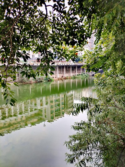 宋水堤笔直, 两岸矗楼群。