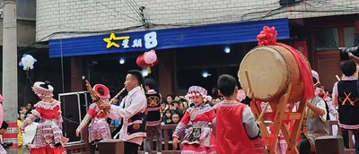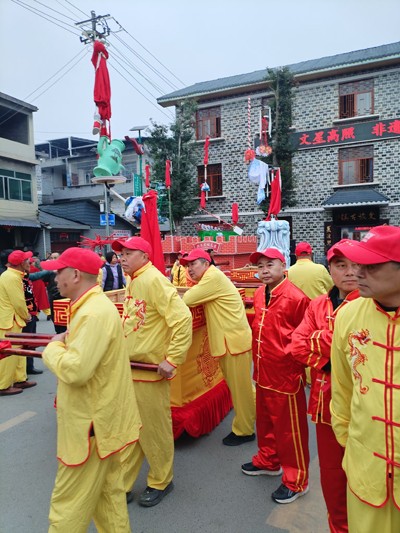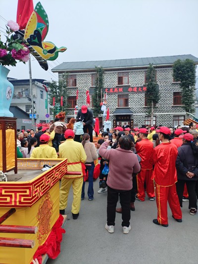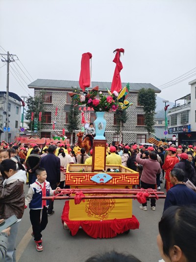 米酒佳肴长桌宴, 踩山盛节祈福添。