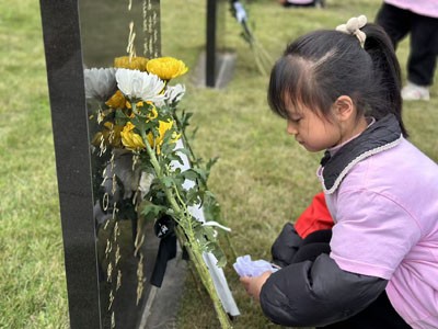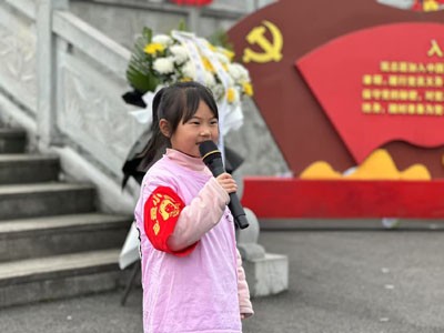 孩子们排着整齐的队伍,怀着崇敬的心情,带着亲手制作的小白花来到白塔山烈士陵园,瞻仰革命先烈。在宁静的烈士陵园,一场庄严肃穆的悼念仪式开始了。全体师生默哀致敬,深切地缅怀那些为国家和人民献出宝贵生命的英雄们。