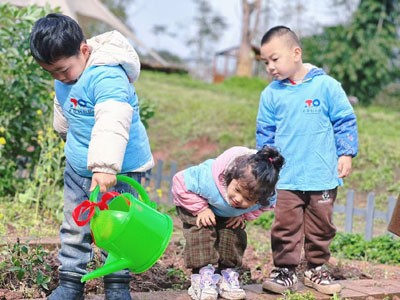 种植活动正式拉开帷幕了!孩子们迫不及待地拉上家长,纷纷拿起小锄头,齐心协力地翻地松土,小心翼翼地将种子播撒进土里,再轻轻覆盖上一层松软的泥土,最后提壶浇水。现场一片忙碌,欢笑声、交流声交织在一起,构成一幅副温馨的画面。