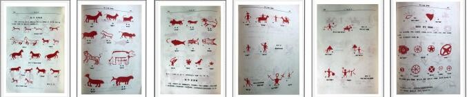 图(2)→《珙县志》(1949~1985年)第689页,1935年,(美)葛维汉来珙县调查后临摹麻塘坝悬棺岩画(上图)。1946年,学者芮逸夫和石钟健来珙县考察,石钟健临摹麻塘坝悬棺岩画(下图)。
