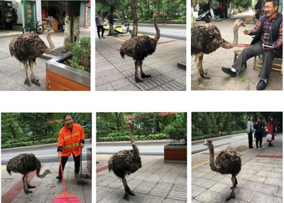 在四川省珙县县城巡场镇滨河西街南一段24号门口,有只驼鸟潇遥在人行道上,不仅旁若无人,而且还主动接触过往行人,甚至还要给人打招呼。