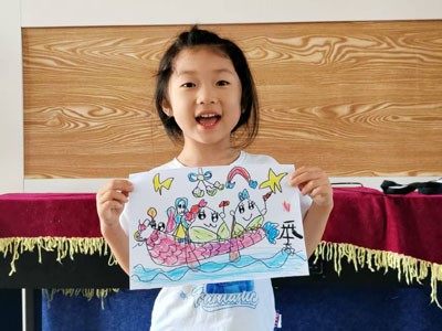 在绘画活动中,孩子们发挥想象,用五彩的画笔在纸上勾勒出心目中的龙舟。有的龙舟色彩鲜艳、威风凛凛,仿佛即将在水面上破浪前行;有的龙舟上还画满了可爱的装饰,展现出孩子们独特的创意。通过画龙舟,孩子们不仅锻炼了绘画能力,更直观地感受到了赛龙舟这一习俗的热闹氛围。